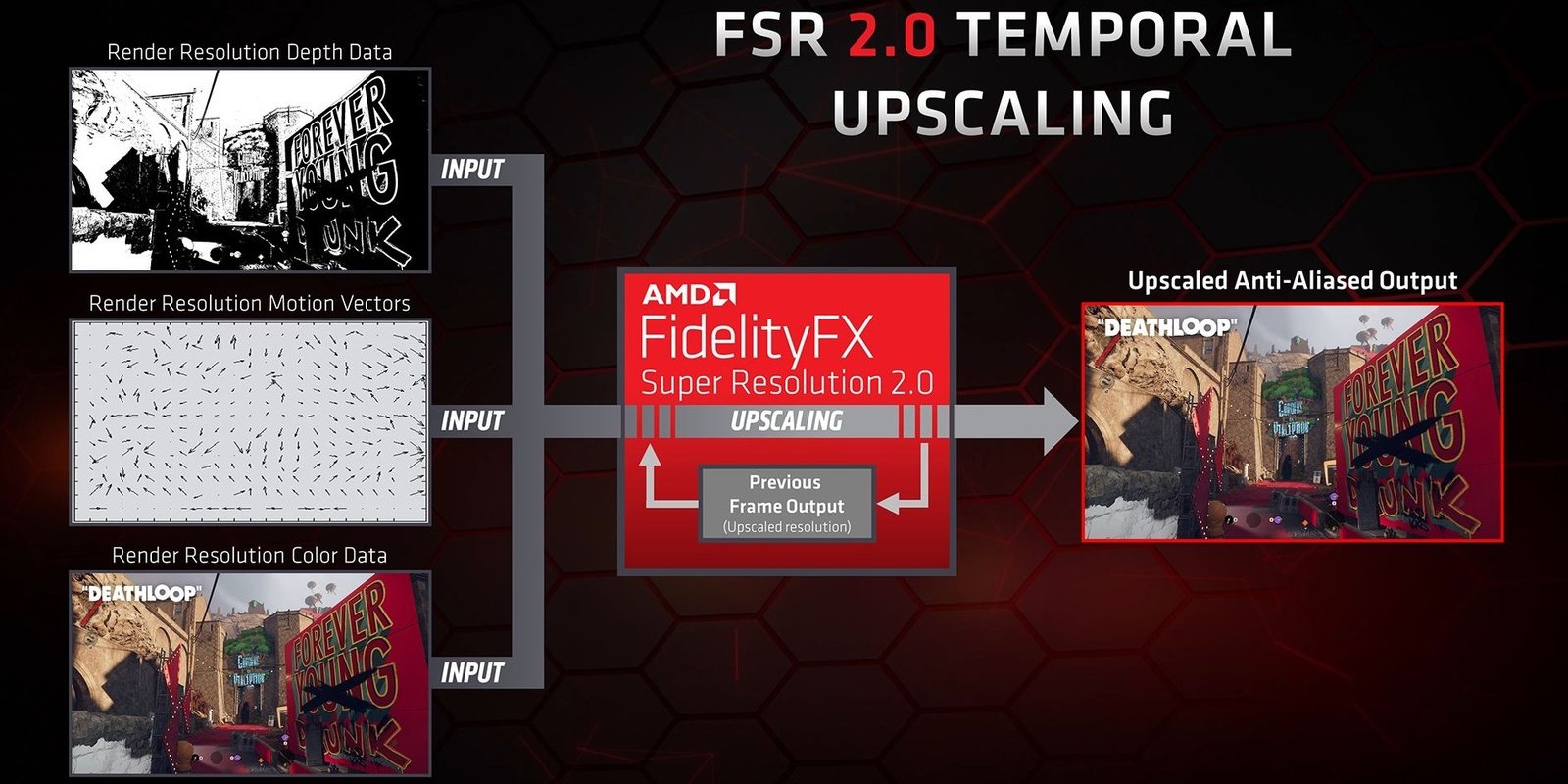 FSR (FidelityFX Super Resolution) adalah teknologi upscaling yang dikembangkan oleh AMD. Berbeda dengan DLSS, FSR adalah algoritma upscaling berbasis ruang yang tidak memerlukan hardware khusus atau machine learning. FSR bekerja dengan menganalisis frame yang ada dan menggunakan algoritma untuk meningkatkan resolusi gambar. FSR menawarkan beberapa mode kualitas, mulai dari "Quality" yang memberikan peningkatan kualitas visual yang lebih baik, hingga "Performance" yang memberikan peningkatan frame rate yang lebih besar.
